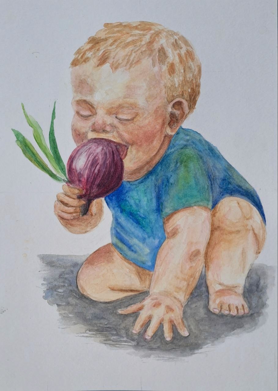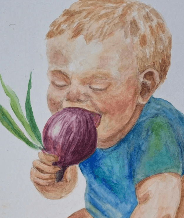 Kind beißt in Zwiebel