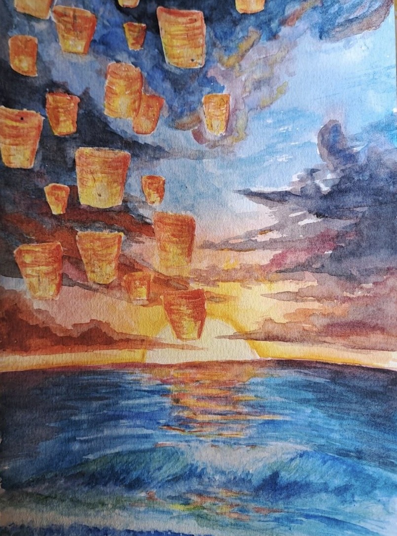 Himmelslaternen bei Sonnenuntergang