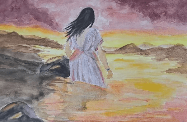 Frau am Ufer