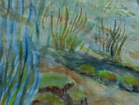 Schwedische Natur gemalt mit Seewasser, am See.